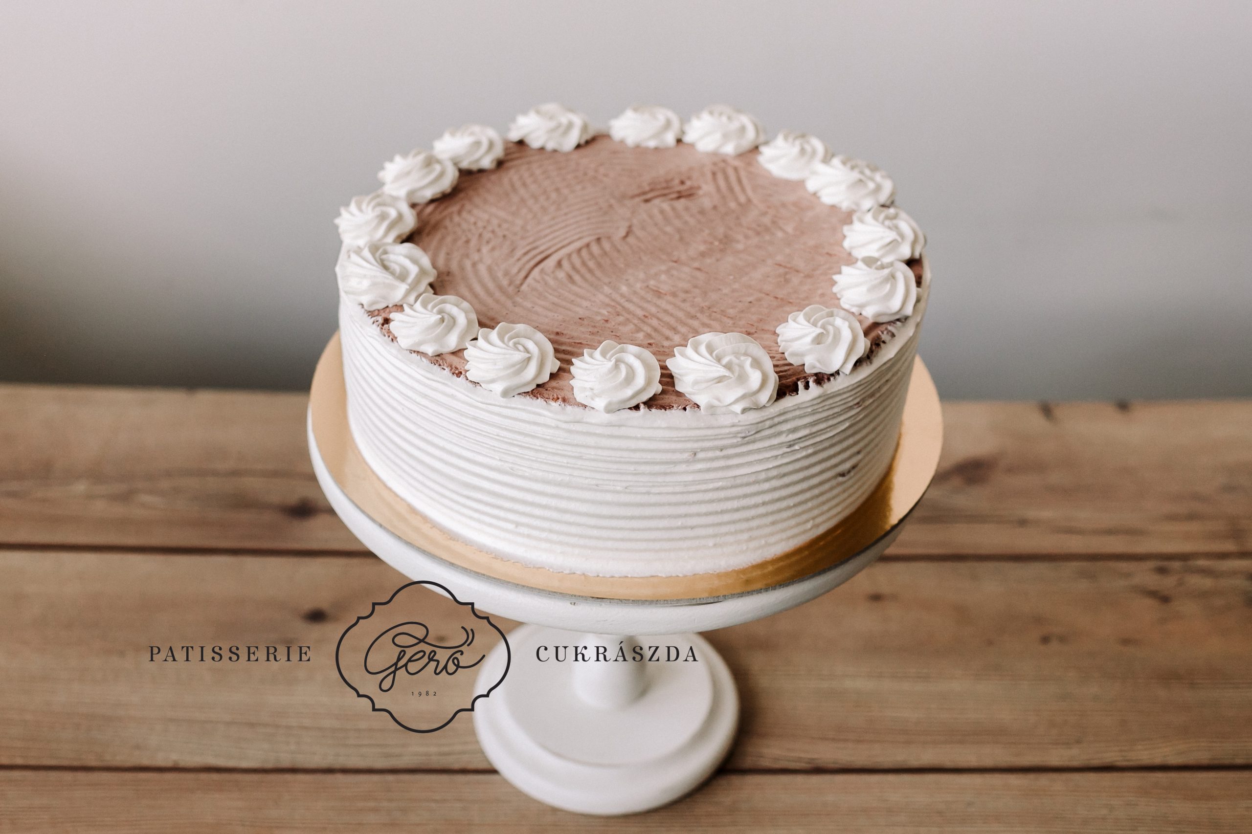 Búzalisztmentes piskótalapok között lágy csokoládékrém, mely kókuszhab és nyírfacukor felhasználásával készült, így a torta liszt-, cukor- és tejmentes egyben.