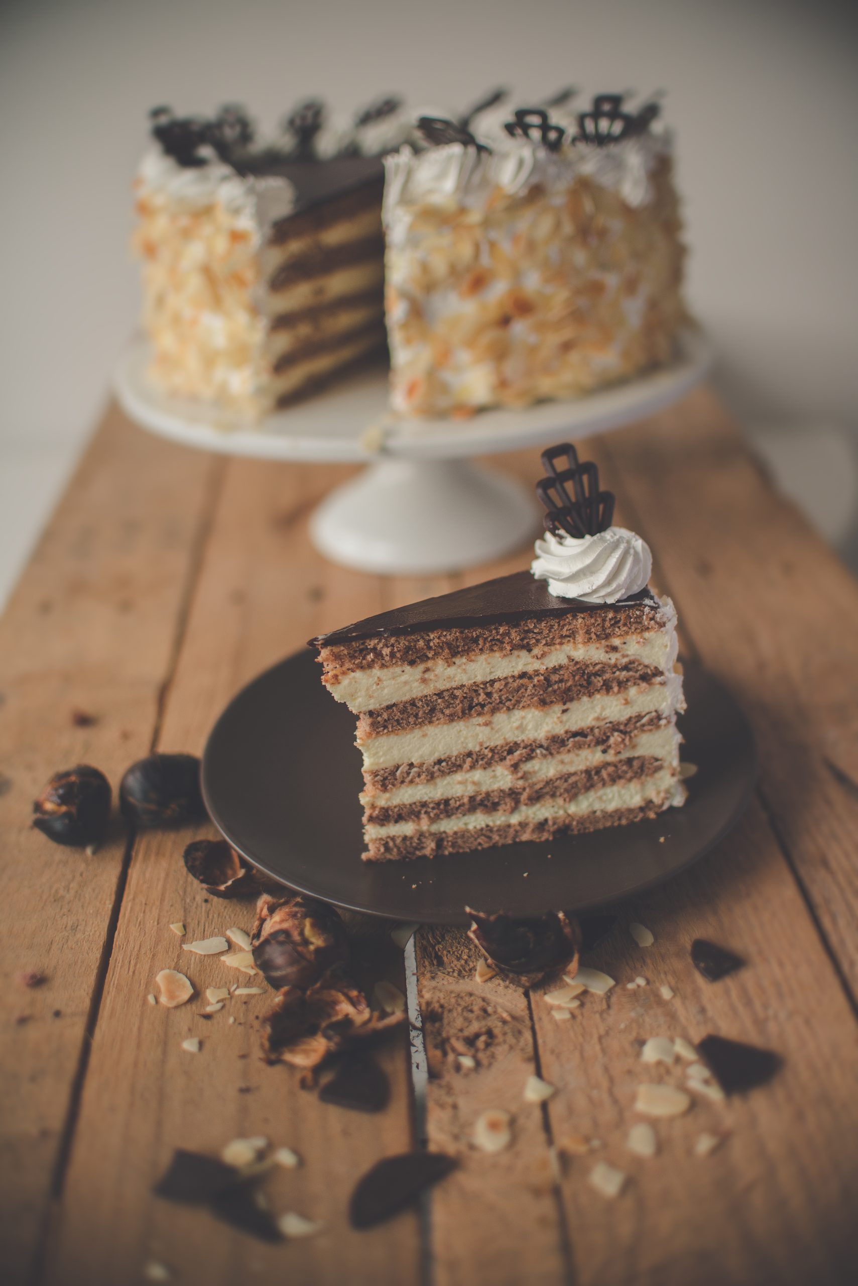 Gesztenye liszttel készült lapok között lágy, vaníliás krém, teteje csokoládéval borítva. Receptúrája búzalisztet nem tartalmaz, így lisztérzékeny vendégeinknek is ajánljuk.